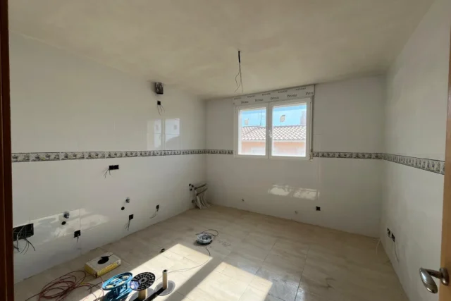 Cuenta con 2 dormitorios, salón independiente, cocina y 2 baños completos, uno de ellos en suite dentro del dormitorio principal, lo que añade privacidad y confort. La distribución es funcional y los acabados, actuales. Además, incluye instalación eléctrica completa, lo que lo diferencia del piso contiguo (1A) y permite su ocupación inmediata.